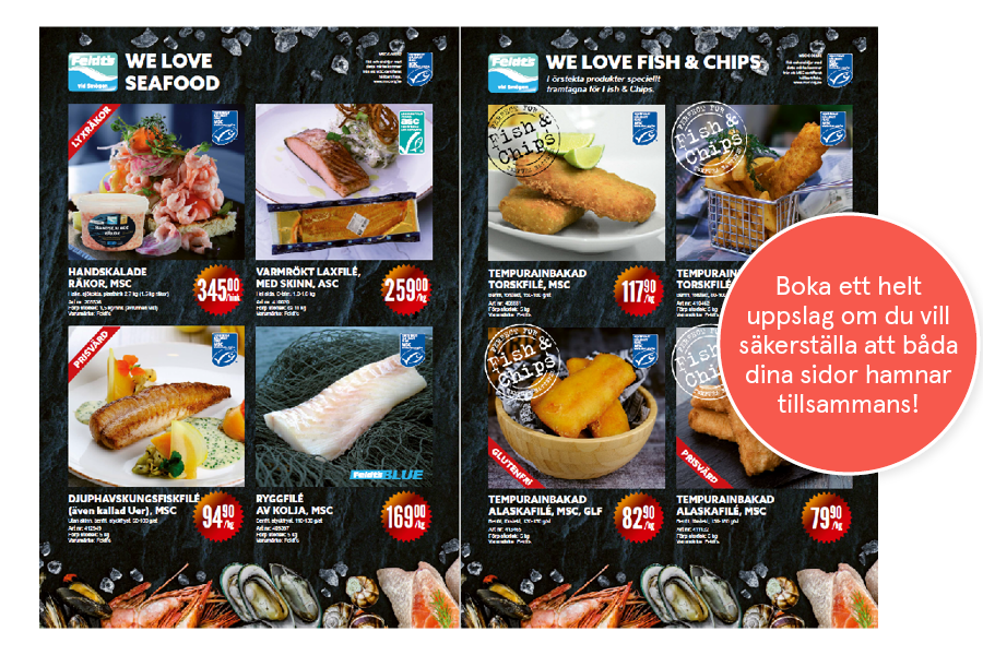 Om du har två helsidor som du vill säkerställa att de hamnar ihop rekommenderar vi dig att boka ett uppslag istället för två helsidor. På så sätt kan du öka chansen att skapa annonser som verkligen tar för sig.