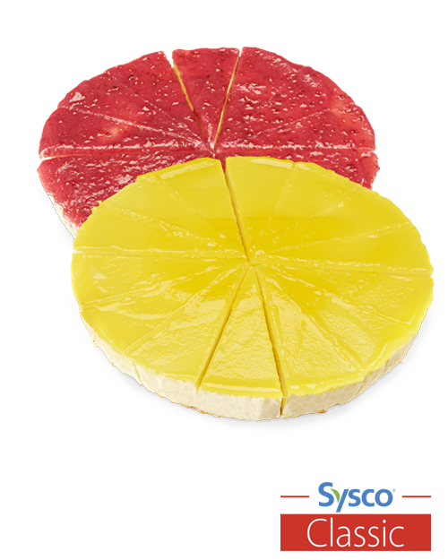 Svensktillverkade, förskurna cheesecakes från vårt eget varumärke Sysco Classic. De är obakade och krämiga cheesecakes med smakrika fyllningar av färskost och botten av digestivekex. Välj mellan syrlig citrongelé, bärig hallongelé och sötsyrlig jordgubbsgelé.