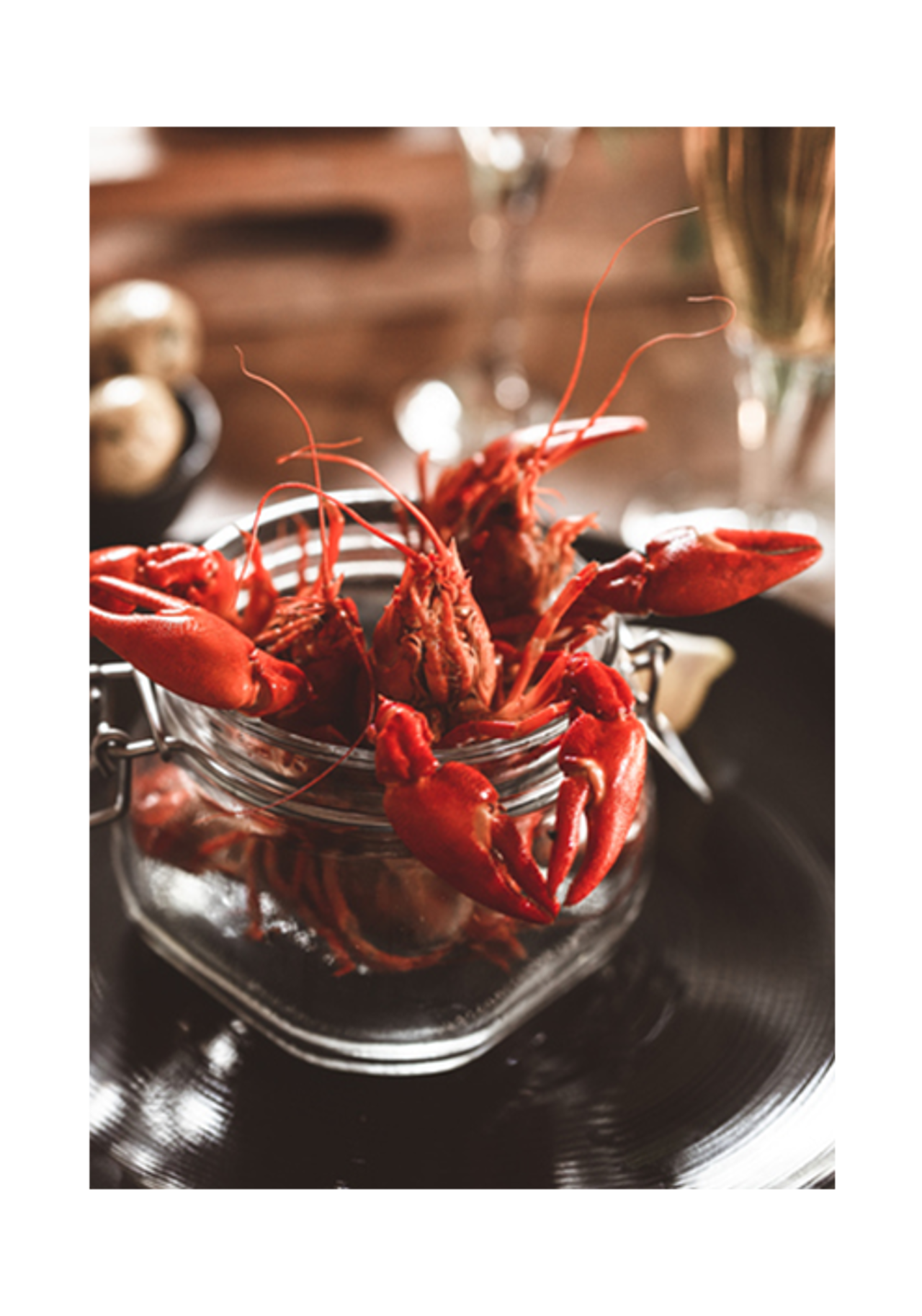 - Erbjud en stående kräftmeny med signalkräftor, rökta räkor, aioli, smetana, knäckebröd, kryddost, västerbottenpaj, gräslök & rödlök.