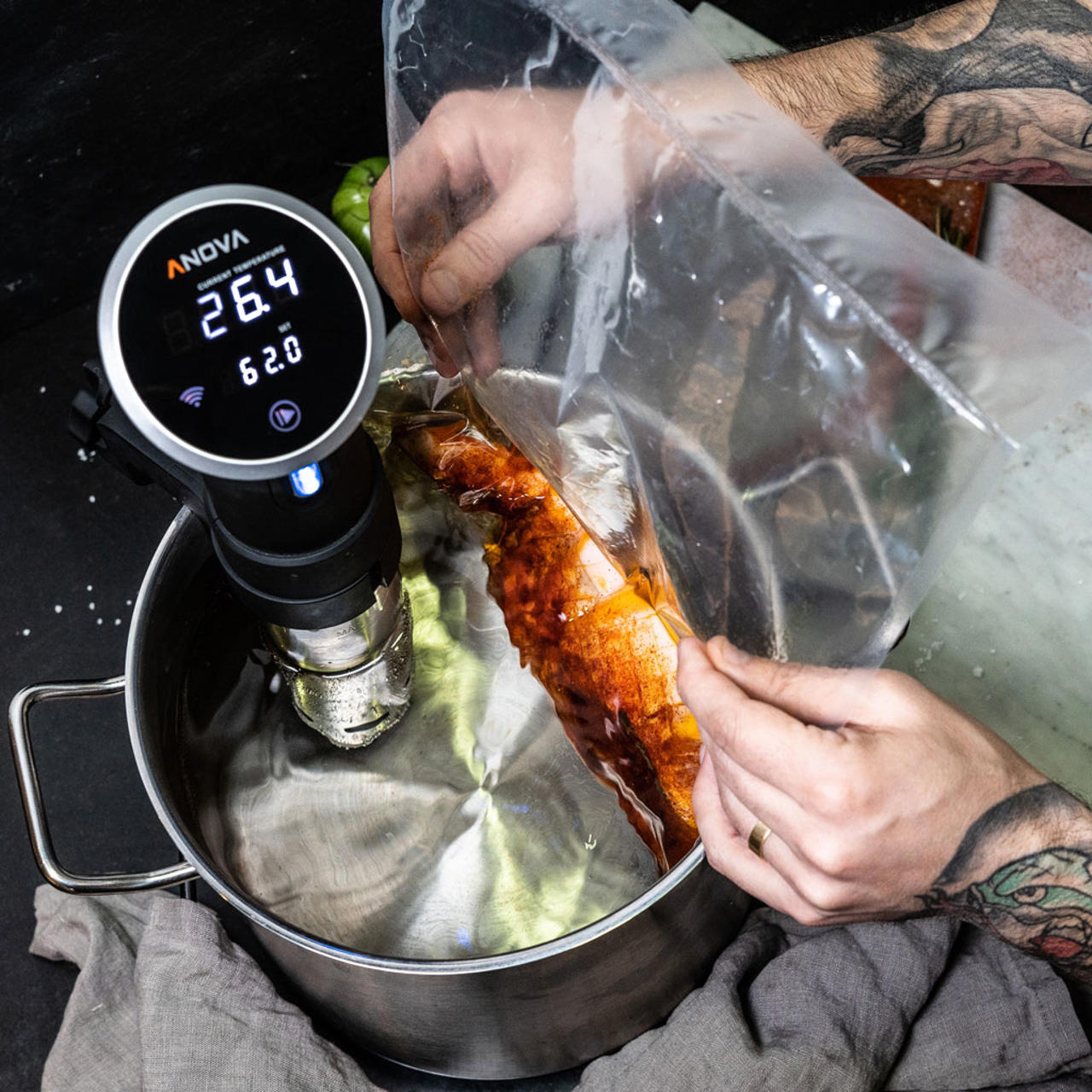 Att vakumföpacka din råvara är en viktig del av sous vide metoden. För att göra detta behöver du vakumpåsar och en vakummaskin, alternativt en vakumförslutare.Det är vakuumförpackningen som möjliggör att alla smaker och aromer innesluts.