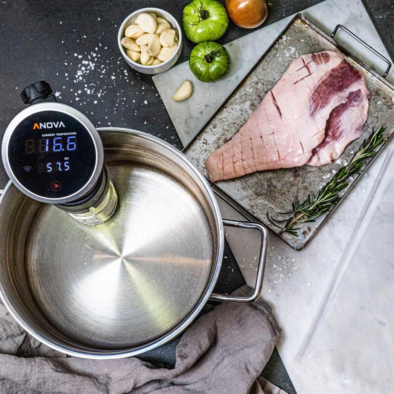 En kastrull eller kantin av lämplig storlek att fästa sousvide-staven på och lägga den vacuumförpackade råvaran i.