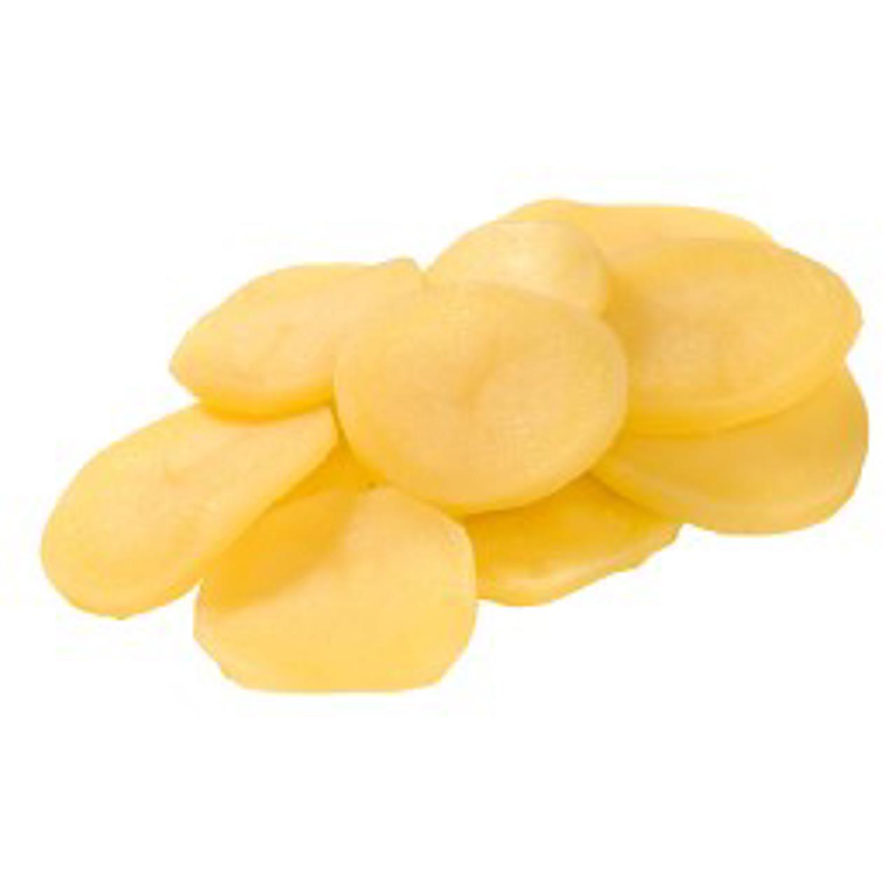 Potatisen är förkokt och ångskalad vilket innebär minimalt med svinn. På så sätt behåller vi också så många näringsämnen som möjligt. Potatisen kommer skivad och klar att användas direkt i gratäng eller sallad.- Gjord på svensk SMAK-märkt potatis med en hög och jämn kvalitet.