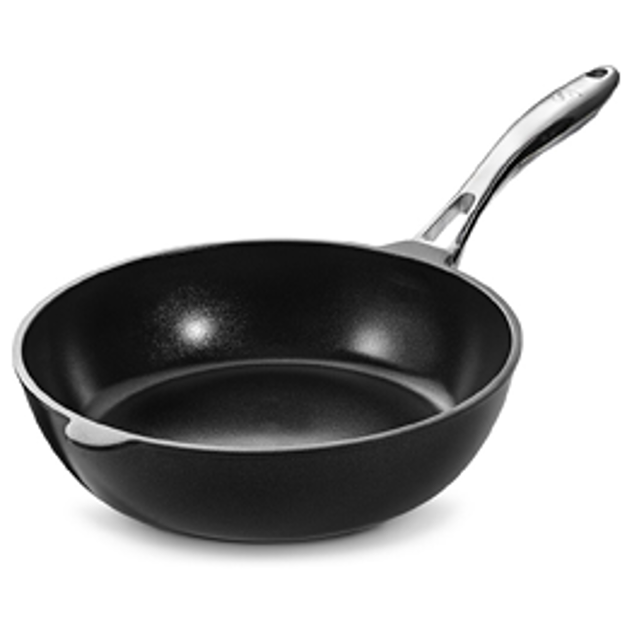 En sautese av 100% återvunnen aluminium med keramisk non-stick-beläggning, utan tillsatta PFAS-ämnen. I en robust design som säkerställer att varje centimeter av pannan fördelar värmen jämnt. Med ett ergonomiskt handtag i rostfritt stål för ett stabilt grepp. Perfekt vid tillagning av till exempel bolognese, mustiga grytor eller att slunga grönsaker i.