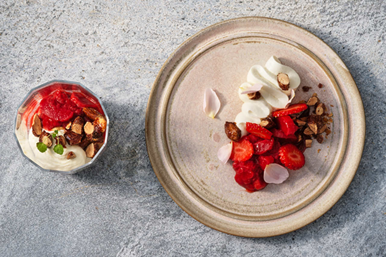 Att servera glasdesserter kan vara optimalt till lunchbuffén eller ett konferensfika men till à la carte på kvällstid kan en tallriksdessert passa bättre. Samma komponenter som du använder till glasdesserterna funkar lika bra på tallrik. Genom att använda samma byggstenar till olika typer av serveringar gör att du minskar både arbetstiden och matsvinnet.