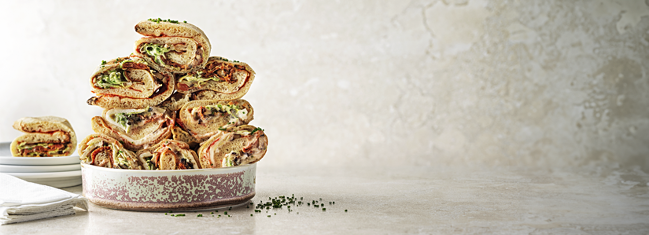 Pizzaroll med bakad portabello, lufttorkad chorizosalami