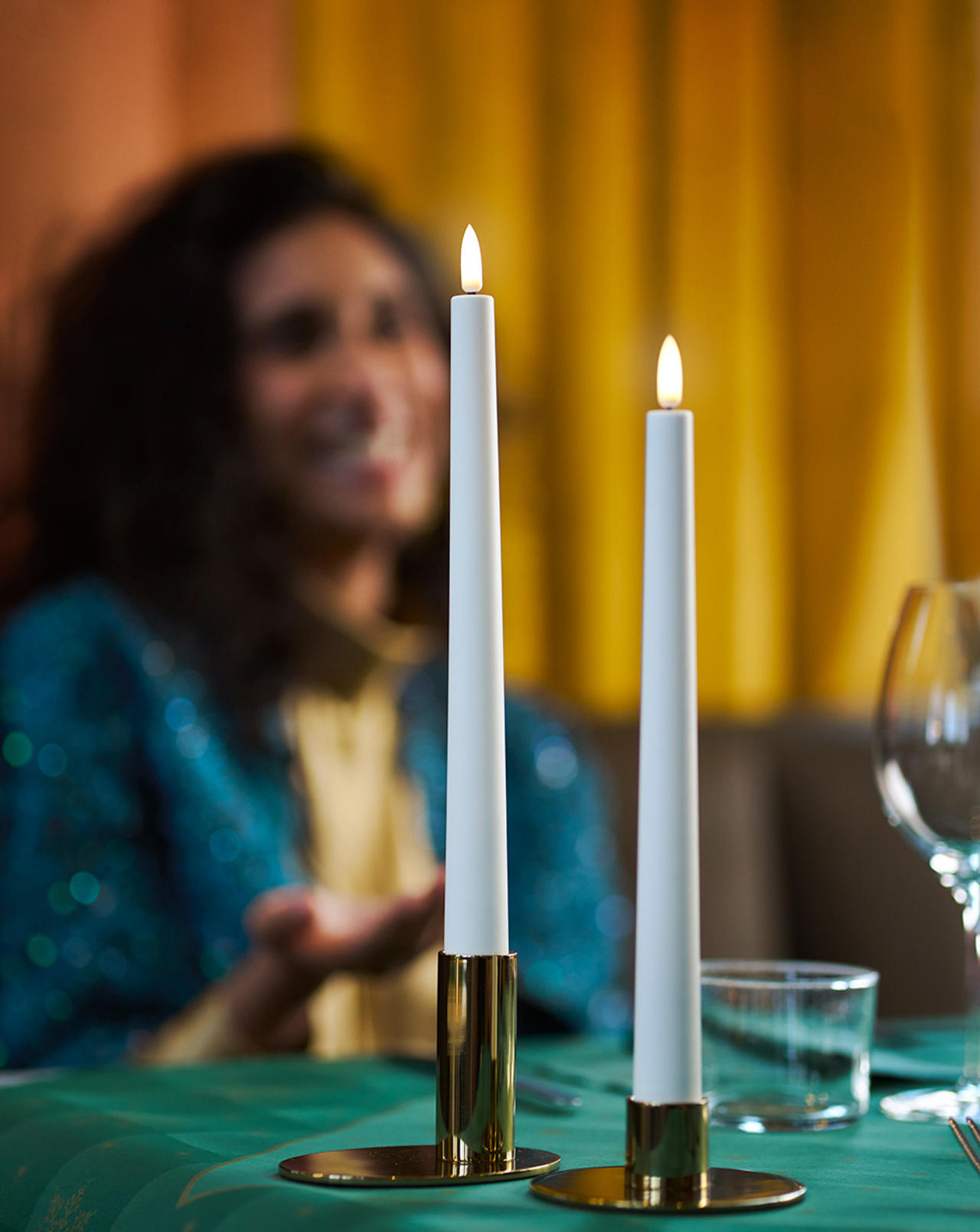 Våra ljus och LED-lampor hjälper dig att jaga bort vinterkylan. Du kan se på dem som små fyrar som sprider värme och gör varje måltid till en mysig stund. Du vill inte bara ha ljus, utan även skapa en miljö som får gästerna att känna sig helt som hemma. Vi erbjuder allt från ett mjukt flimmer till ett muntert sken, så att dina lokaler kan bli stämningsfulla och mysiga.