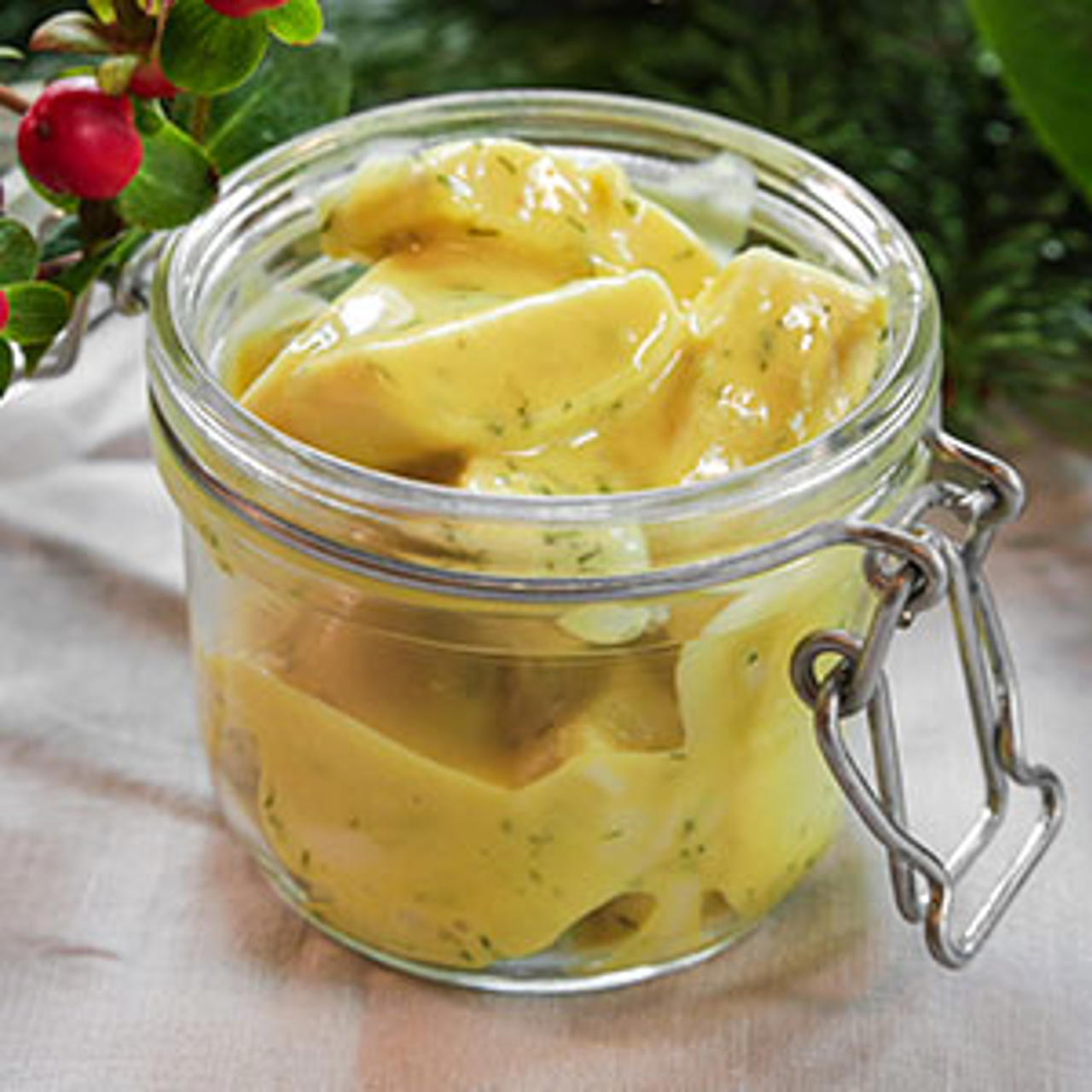 - Låt dem dra i såsen cirka 1h innan servering. Alternativt använd silad sås från senapsill. Låt gärna stå ett dygn i kylskåpet.