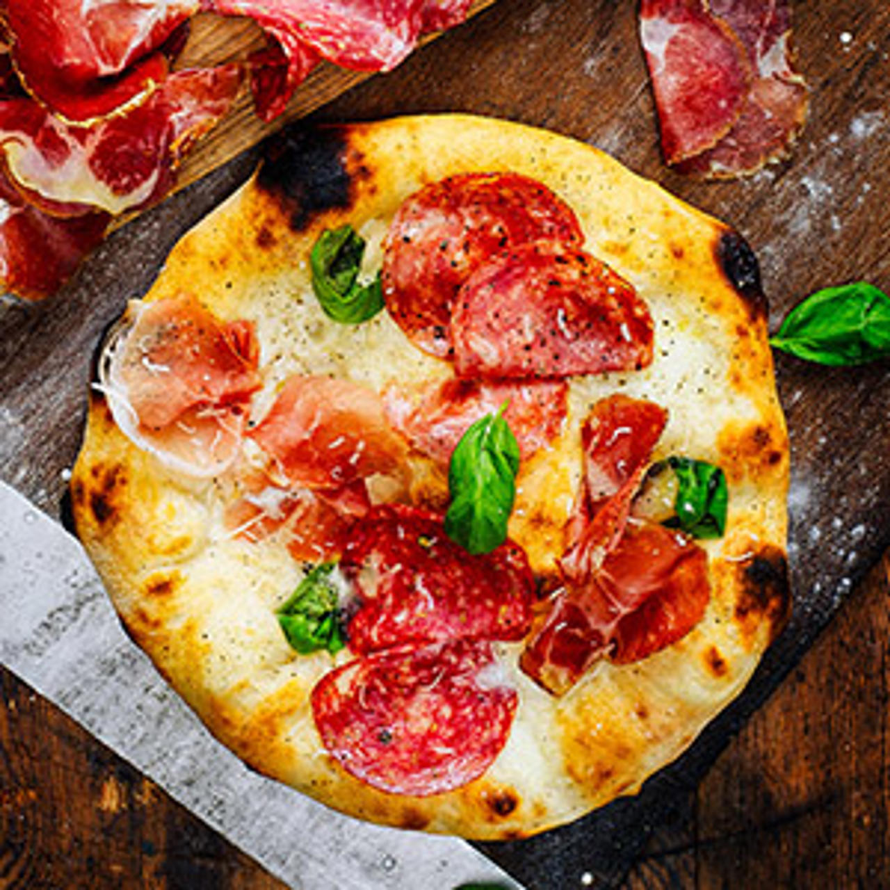 Toppa den med Tryffelsalami, Fänkålssalami, Coppa och Prosciutto på rapsgris från nio utvalda svenska gårdar.