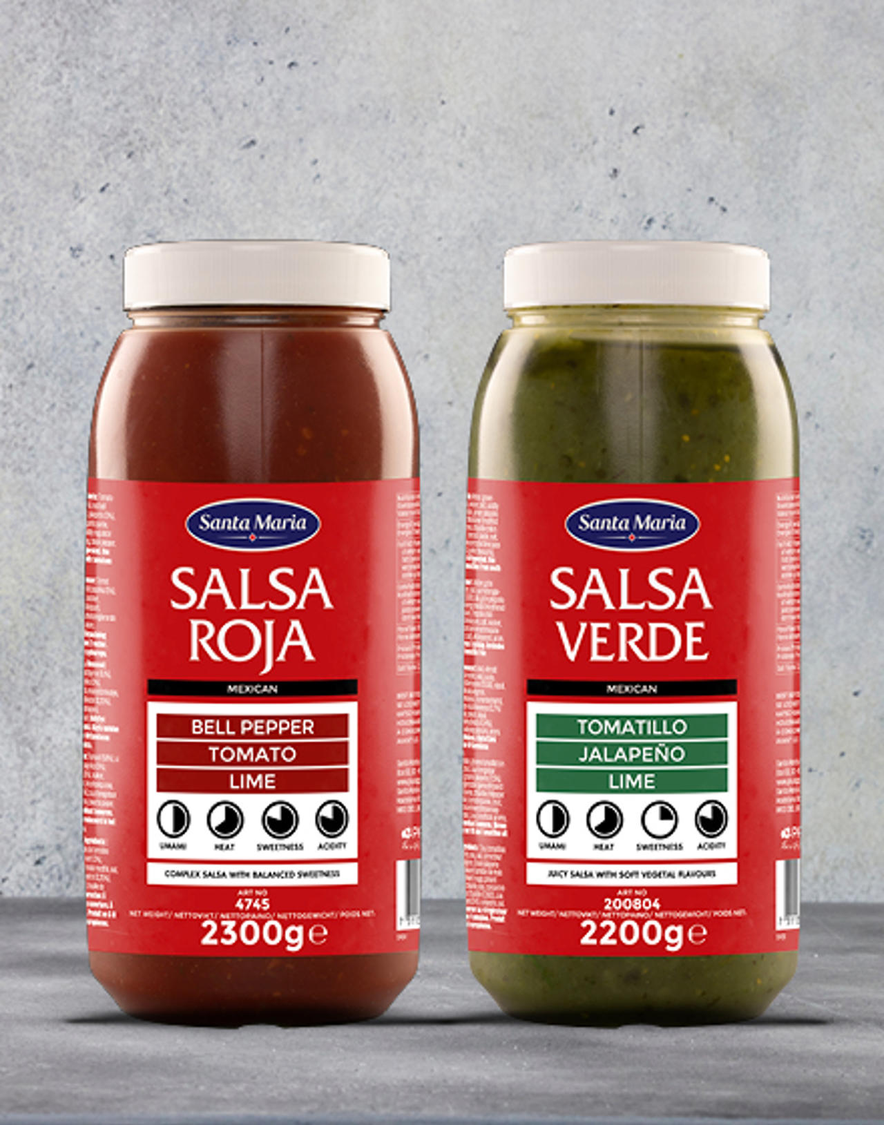 Det nya salsasortimentet bjuder på flera nyheter av olika slag. Alla produkter har fått en ny design som tydligt presenterar varje smakprofil. Salsan som tidigare hette Taco Sauce Hot tillverkas fortfarande enligt samma recept men har bytt namn till Smooth Salsa. Och de gamla favoriterna har fått sällskap av två helt nya produkter: Salsa Roja som är en tomatsalsa med röd paprika, komplex smak och fin balans mellan sött och syrligt. Salsa Verde som är en tomatillosalsa med frisk syra från lime och behaglig hetta från jalapeños.
