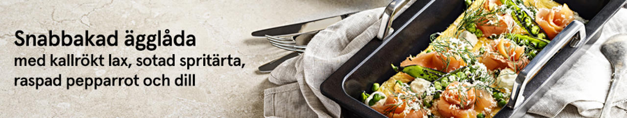 Snabbakad ägglåda med lax, sotad spritärta, raspad pepparrot & dill