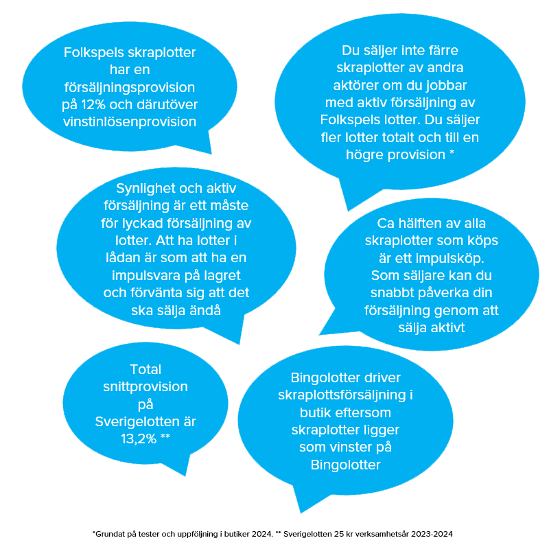 Folkspel har välkända produkter som är enkla att förstå för konsumenterna och därmed lätta att sälja. Du som butiksinnehavare får hela 12% försäljningsprovision för Sverigelotten och 10% för BingoLotto. Dessutom har vi vinstinlösenprovision på alla våra produkter.
