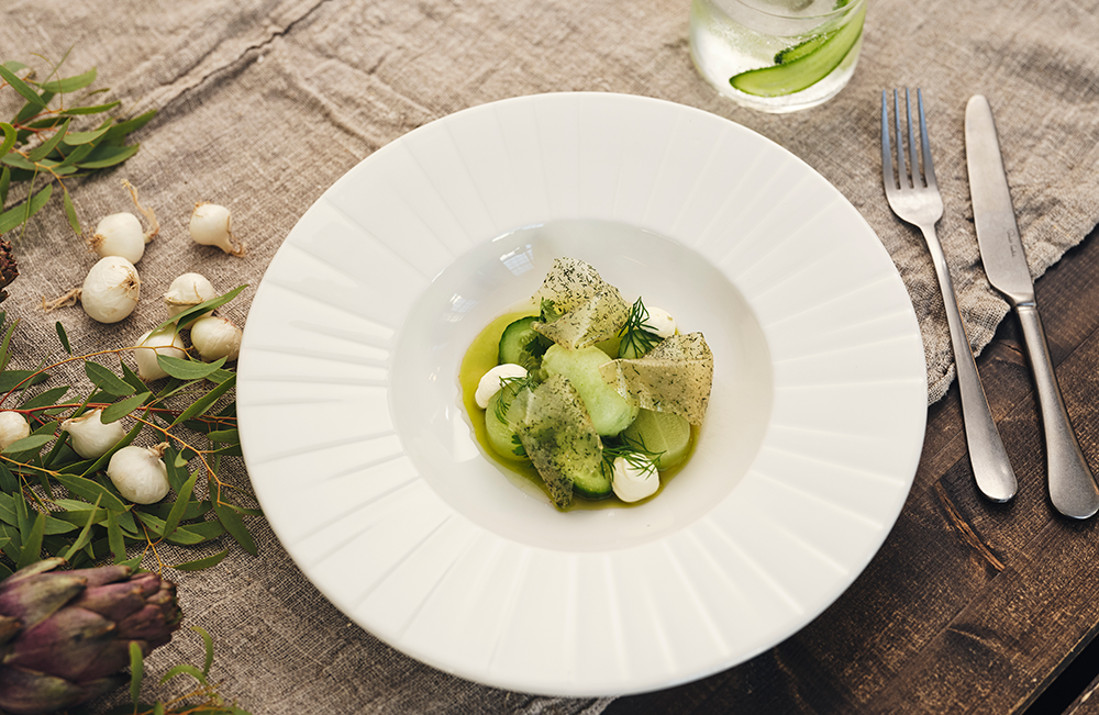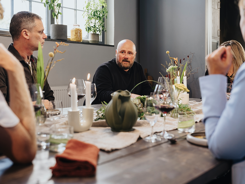 Han dukar därför gärna sina restaurangbord med detaljer från lokala hantverkare på Gotland.