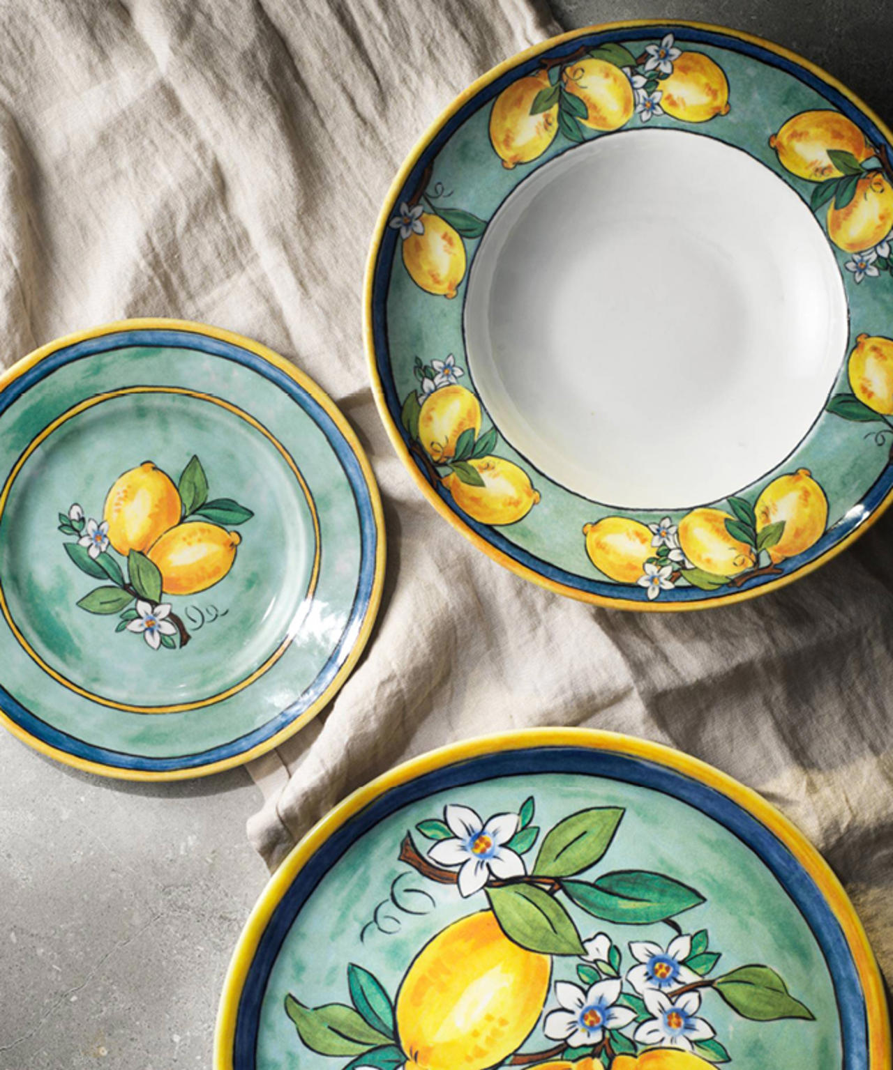 Serierna Lemon och Cibulak i dekorativa mönster skapar rätt känsla för en genuin italiensk måltid.