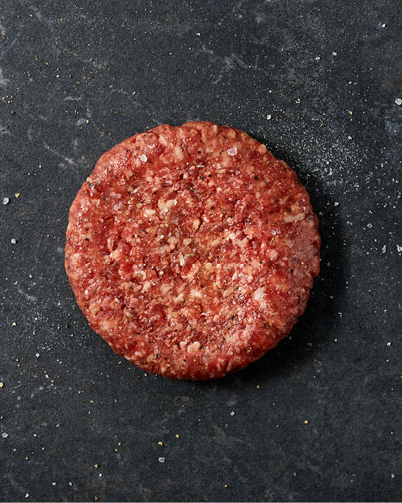 — Vi valde att jobba med ett slakteri som framför allt styckar kvigor, alltså yngre hondjur, eftersom de har en finlemmad muskulatur och ett mört kött. Vi tog bort benköttet från ljumskarna och neråt eftersom lägg och benfästen har mycket senor. Därefter mixade vi upp blandningen med rib meat som har en riktigt bra fettansamling och är ett mört och trevligt kött. Vi använde bara mittdelen på revbenen för att undvika benflisor och brosk, som annars kan uppstå vid högre malningsgrad.